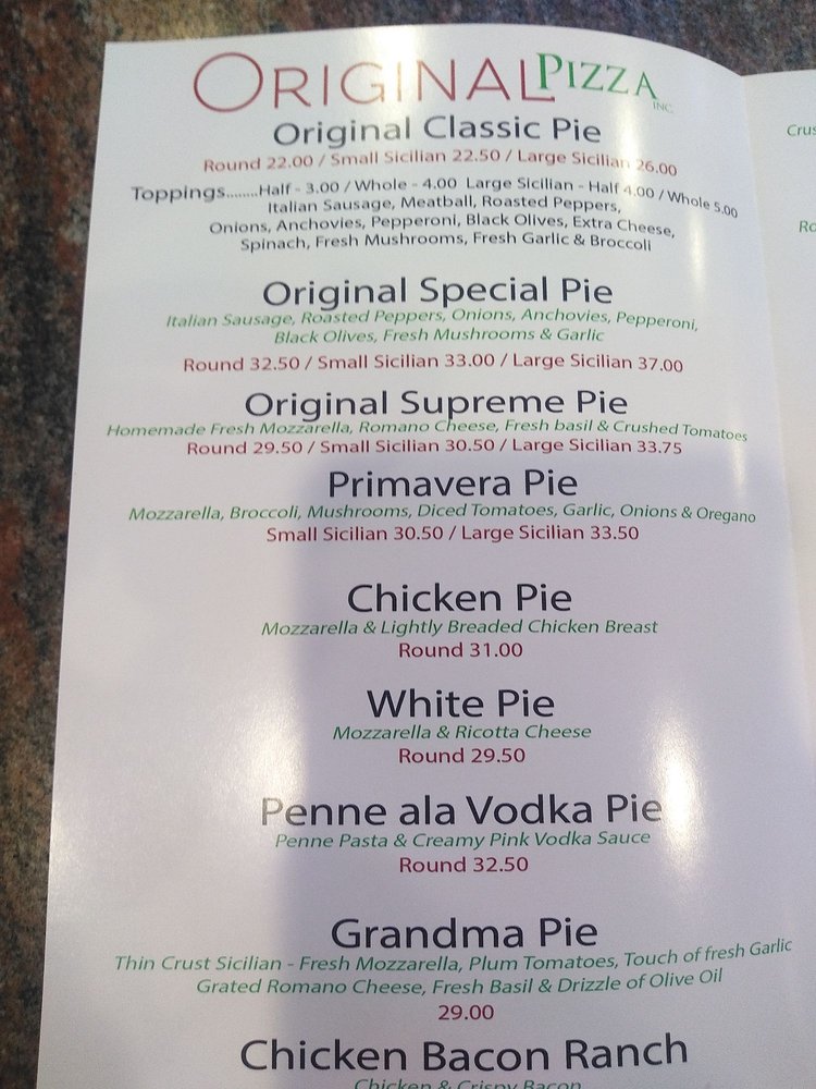 Original Pizza, located at 2351 Ralph Ave in Brooklyn, NY, offers a variety of delicious pizzas with unique flavors and fresh ingredients. Customers rave about the Sicilian pizza with its fresh dough and tangy sauce, though some mention that the cheese can be a bit salty. The buffalo chicken pizza and spinach roll are also popular choices among diners. The casual setting provides a quintessential Brooklyn pizza experience, with outdoor seating available for those who prefer dining al fresco. The menu is filled with vegetarian options and the restaurant caters to families with kids as well as larger groups. The quality of the pizzas justifies the slightly higher price point, making Original Pizza a must-try for pizza lovers in the area.